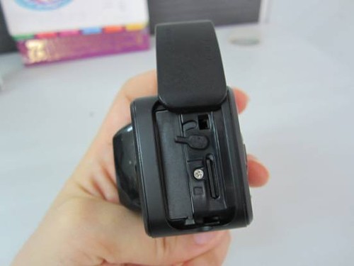 轉(zhuǎn)個(gè)側(cè)面,打開蓋子,就能看見G300的內(nèi)部構(gòu)造。G300電池倉采用了跟相機(jī)一樣的結(jié)構(gòu),卡槽和電池槽在同一的位置。G300行車記錄儀自身是沒有內(nèi)存的,要使用內(nèi)存卡進(jìn)行視頻文件存儲,它最大可支持32G的內(nèi)存卡。