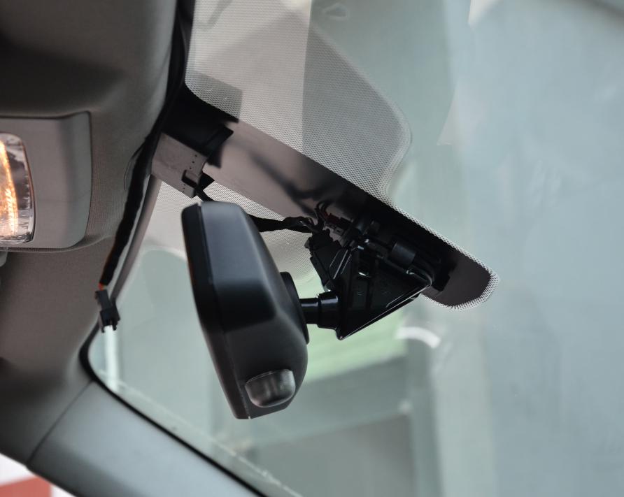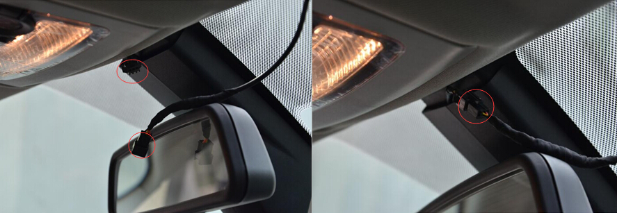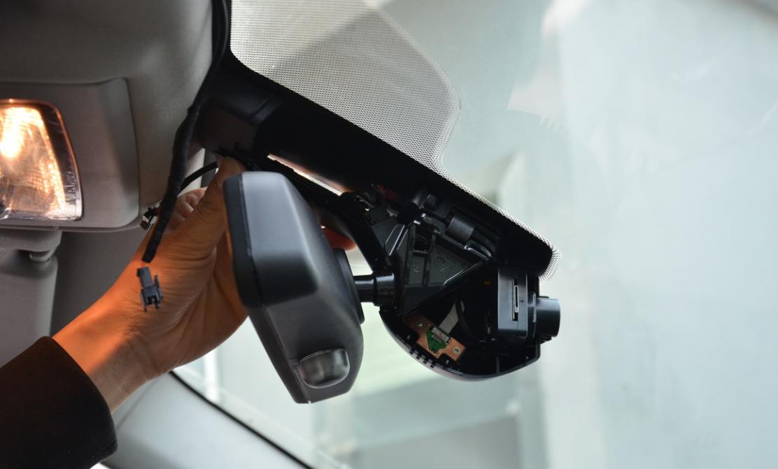 要先將機器的主體部分安裝在原車后視鏡背面。其實操作起來很簡單,只要鏡頭調(diào)整好方向,將機器主體部分與后鏡頭固定的位置相吻合即可。