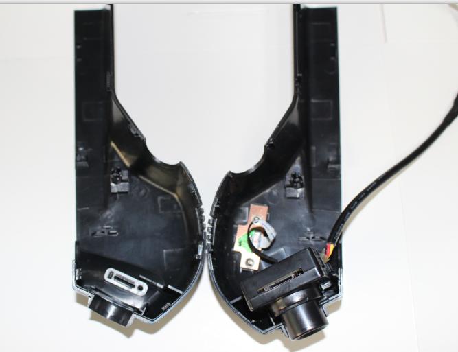 將大智寶馬專車專用行車記錄儀拆分成兩部分,可以看到它的內(nèi)部結(jié)構(gòu),有一個小巧迷你的攝像頭露在外面,它的內(nèi)芯和外接線也都在里面。