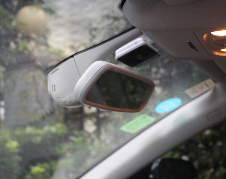 大智奧迪專車專用行車記錄儀采用隱藏式安裝。在測評過程中,技師做了安裝該產(chǎn)品前、后的對比。小編發(fā)現(xiàn),安裝前車內(nèi)后視鏡支架純粹起支撐作用,而大智的產(chǎn)品正是將行車記錄儀內(nèi)置在支架裝置里面,并在前擋風(fēng)玻璃上方與面板的縫隙中走線。合上支架外殼,如果不仔細(xì)看,很難看出已經(jīng)安裝了記錄儀。只有漏在外面的攝像頭和外殼一側(cè)的LED指示燈顯示出安裝前后的區(qū)別。