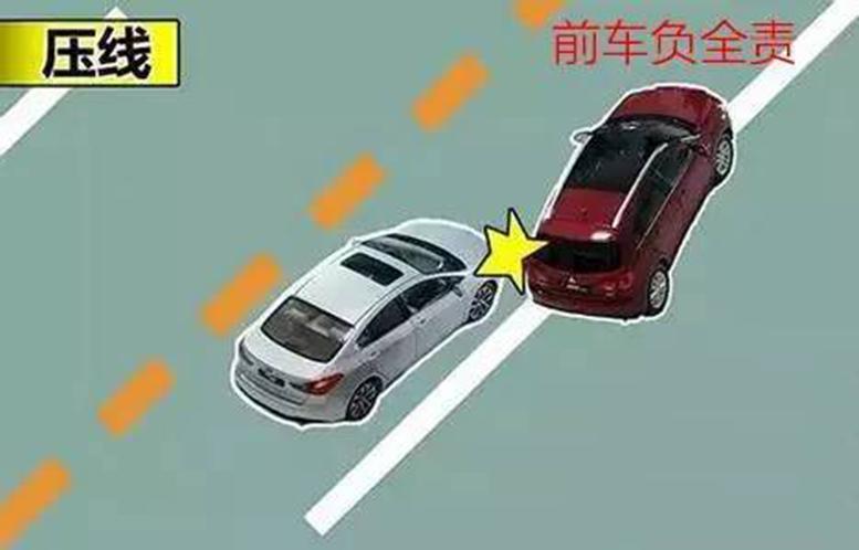 行車時(shí),若前車壓線開車或在緊急并線時(shí),不管是實(shí)線還是虛線,這種情況下和后車發(fā)生追尾事故,則由前車負(fù)全責(zé)。但要有一個(gè)條件,就是在行駛時(shí),前車壓線行為影響了后車的正常行駛而引起的追尾。