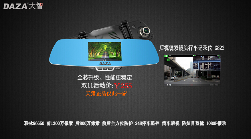 雙11購物狂歡季即將來臨之際,大智行車記錄儀天貓專賣店推出2款主打機(jī)型G822、G350,降價(jià)力度空前,史無前例:雙11登陸大智天貓專賣店,購買大智G822后視鏡行車記錄儀只要255元、G350極清行車記錄儀只要180元。