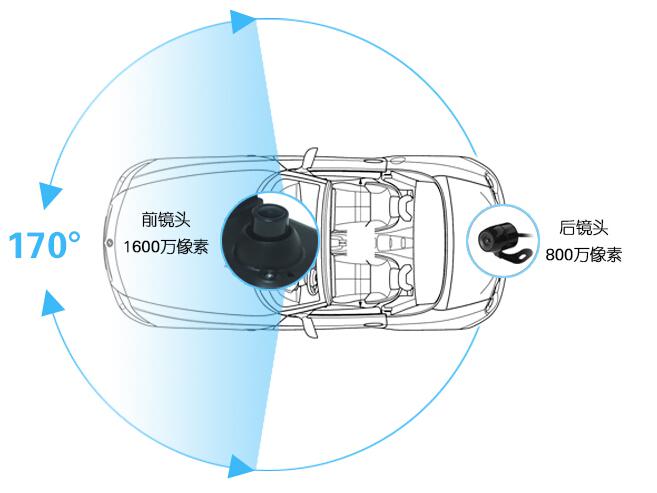 專注于記錄儀的核心功能,前鏡頭170度超廣角,同樣的距離視野更寬闊,影像攝錄無死角無盲區(qū),畫面不變形、清晰細(xì)膩。高分辨率,前鏡頭1200萬像素,后鏡頭800萬像素,無論白天黑夜,記錄影像都一覽無余。