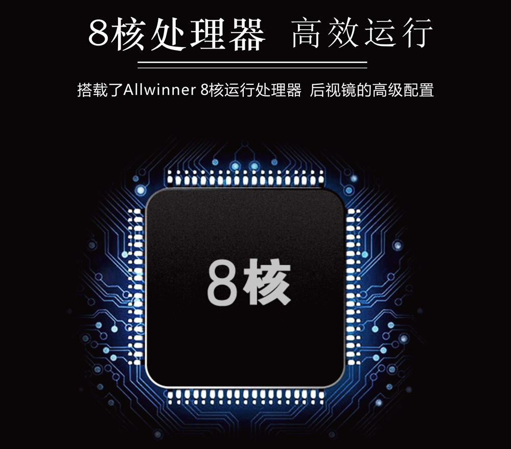 在當(dāng)市場同類產(chǎn)品還處在雙核、4核時代時,大智G869大膽的運用了八核處理器。對行車記錄儀來說,這算是一個質(zhì)的飛躍。因為提升了其強大的處理運行能力,所以使其能在完成前后高清無縫記錄的同時,運行云狗、GPS、語音系統(tǒng)、行車輔助系統(tǒng)等功能依然敏捷順暢。在運行效率上的體驗,瞬間秒殺市場上眾多主流行車記錄儀,最為追求更高性能的你而制。