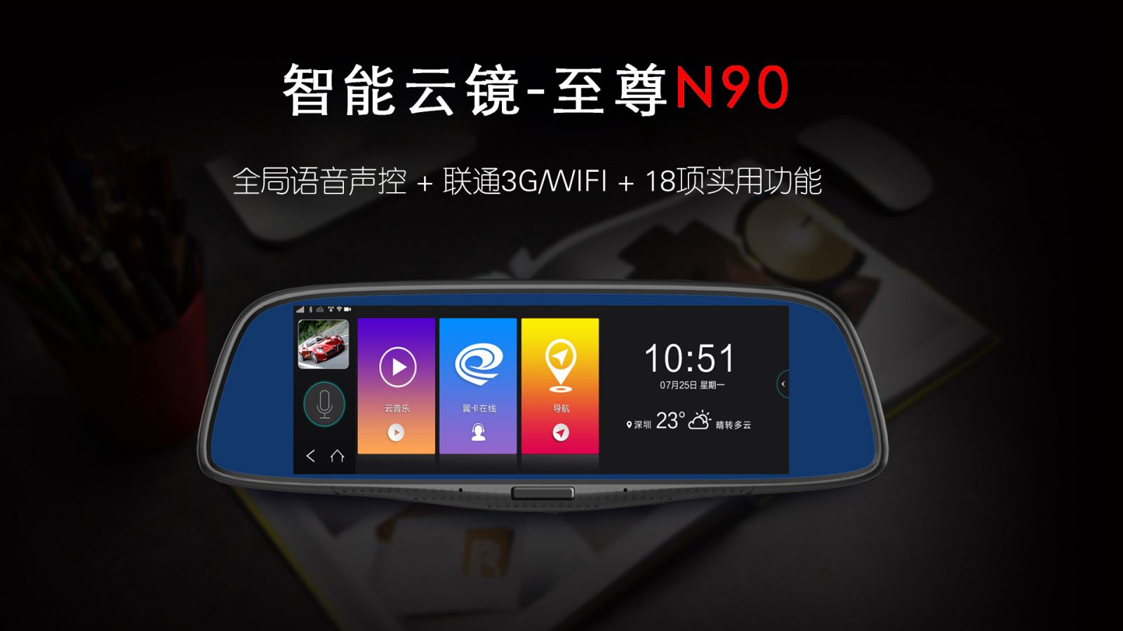小編要介紹的這款智能云鏡來自中國汽車電子領(lǐng)導(dǎo)品牌——大智,型號為N90。大智至尊N90擁有18項實用功能,全局語音聲控人機(jī)對話,自帶3G網(wǎng)絡(luò)支持雙WIFI,相信一定可以滿足很多的車主行車上路的要求。但是今天小編要為大家介紹幾個特別的功能: