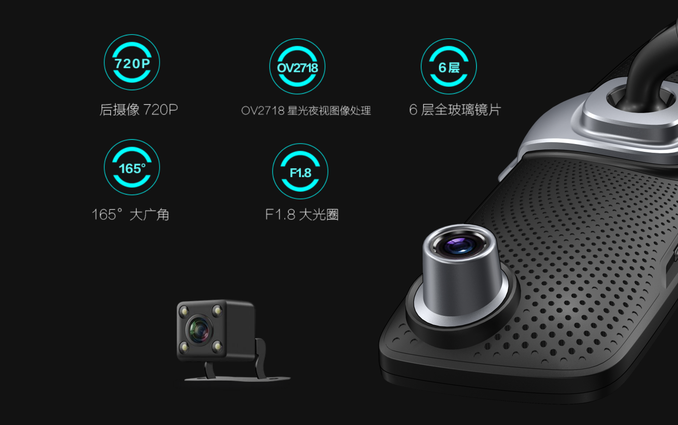 大智全新旗艦車聯(lián)網(wǎng)云鏡N96內(nèi)外兼修,前置攝像頭配置了1600萬像素F1.8超大光圈的超清鏡頭,為你帶來前攝像頭1920*1080P(30 fps),后攝像頭1280*720P(60fps)的超清畫質(zhì)。搭載OV2718影像傳感器,打造星光級(jí)高清圖像。鏡頭具備背照式二代感光器件,高速自動(dòng)對(duì)焦/變焦,過濾紅外線,修正色差等特性。并支持倒車后視影像、一屏雙顯、遠(yuǎn)程監(jiān)控等實(shí)用功能。