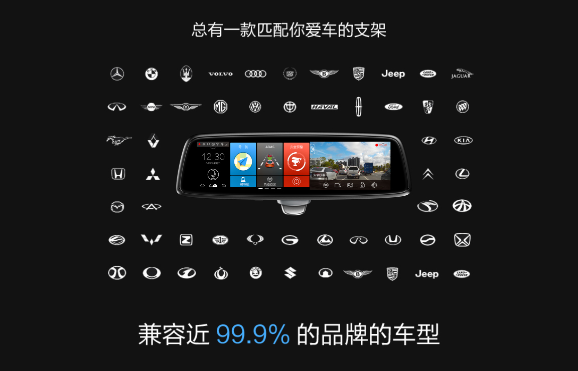 大智全新旗艦車聯(lián)網(wǎng)云鏡N96為了不破壞原車風(fēng)貌,采用專車專用支架來安裝。支架適配市面上大部分車型,不管你是保時(shí)捷還是五菱宏光...總有一款專用支架適合你。
