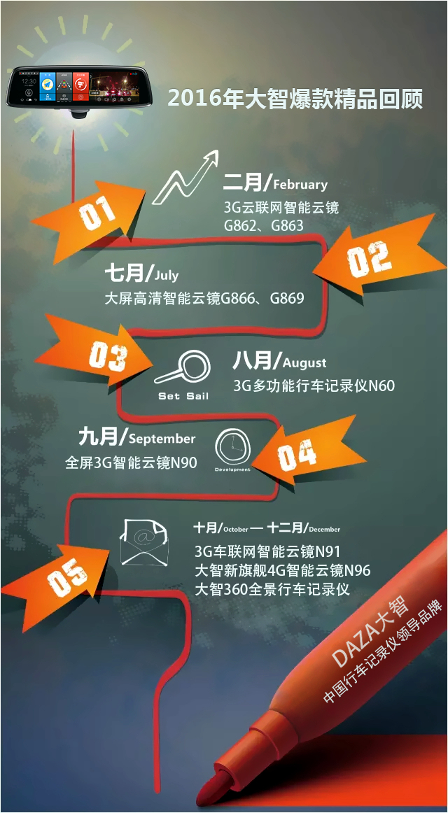 時(shí)光匆匆流逝,轉(zhuǎn)眼之間2016年又在央視難忘今宵的歌聲中結(jié)束了。在這一年里,大智的發(fā)展與進(jìn)步無(wú)疑是巨大的,回顧這一年,大智真是推出了有不少爆款的好產(chǎn)品。比如高清智能云鏡N90和360全景行車記錄儀還有現(xiàn)在的旗艦云鏡N96等產(chǎn)品都受到了市場(chǎng)的熱烈追捧,并收獲了很高的用戶評(píng)價(jià)。