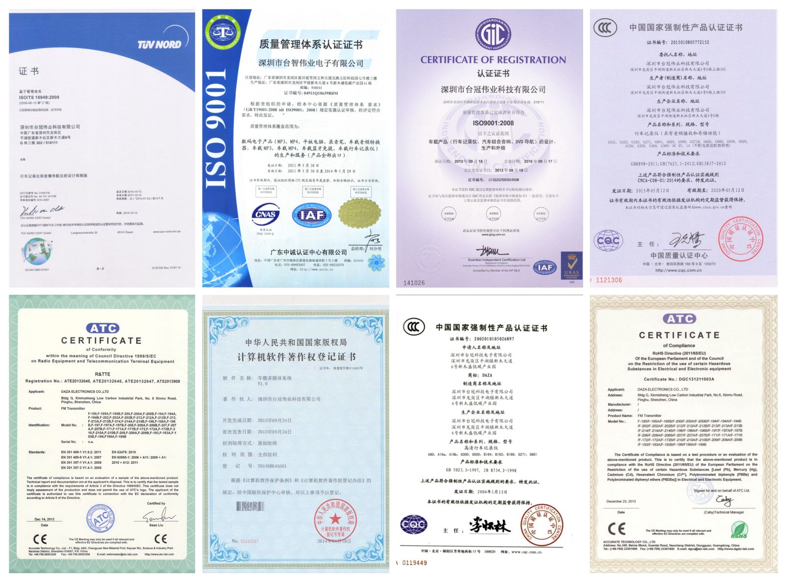 大智是個(gè)非常重視質(zhì)量的品牌,專車專用行車記錄儀產(chǎn)品的機(jī)身與內(nèi)部電子元器件均采用車規(guī)級(jí)材料打制,機(jī)器在散熱、抗沖擊、抗高低溫、抗電磁干擾、抗靜電等標(biāo)準(zhǔn)都要遠(yuǎn)高于同行業(yè)產(chǎn)品。早在2014年大智創(chuàng)新就獲得了國(guó)際汽車行業(yè)的技術(shù)規(guī)范TS16949的認(rèn)證(編碼:NO44111141156),是目前行業(yè)獲得此認(rèn)證屈指可數(shù)的品牌之一。正是因?yàn)橘|(zhì)量出眾,所以在售后方面,大智也是國(guó)內(nèi)首家提出,專車專用行車記錄儀2年或10萬(wàn)公里包換的行車記錄儀品牌。